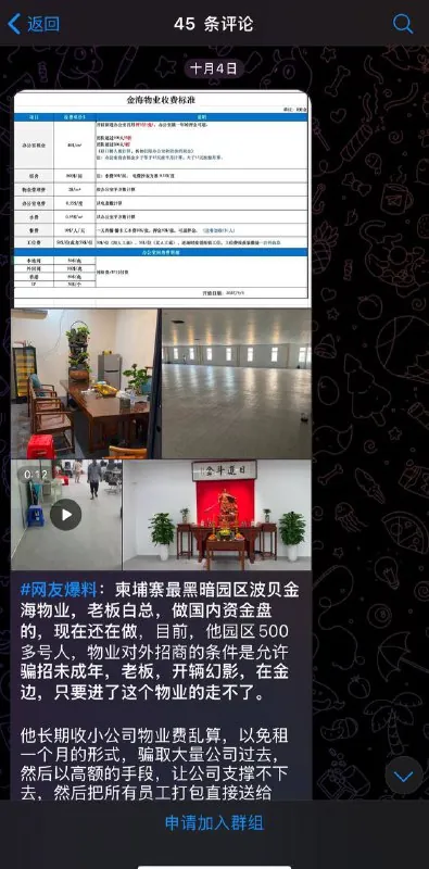 #网友爆料:波贝新城宝龙10号园区 典型的黑园区 黑物业 园区大量买卖人口 多起绑架案的主谋绑匪都躲在里面 园区里都是做的国内盘口 国内公检法有两个办公室 还有国内资金盘 国内刷单 各种各样 公检法公司老板叫曾姐 人称老太婆 福建人 阿宝 啊旺 啊海 还公司有大量毒品买卖给员工 还有被扣押的人员在里面生不如死 里面物业是马超的 这个园区想进去再出来非常难 大家小心点。
