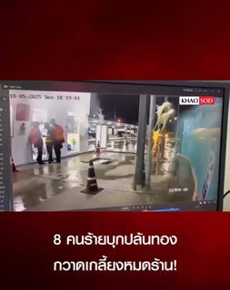 #泰国金店大劫案|8名全副武装的持枪歹徒闯入金店抢劫,一军人中枪、人质险被杀!昨天下午,泰国陶公府一商场内发生金店大劫案,8名全副武装的歹徒持枪抢劫金店,洗劫展示柜内的大量金饰,总重量超过1.5公斤,店家损失或达18万8250美元。期间,一名正在商场内采购物资的军人遭枪击受伤,肩部、左腿及面颊共中弹3处,随后被紧急送医。现场另一名男子被挟持当成人质后获释,无生命危险。作案后,歹徒乘坐一辆未查明车牌...