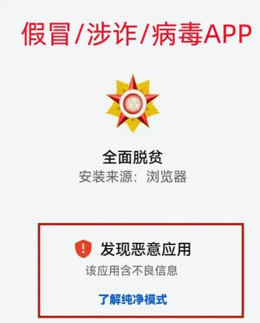 紧急提醒:“全面脱贫”APP是刚上线的民族资产解冻类诈骗项目! 网络中出现了“全面脱贫”APP,是病毒软件,刚刚上线的民族资产解冻类诈骗项目!我国早就打赢了脱贫攻坚战,哪还有这样发钱,发房子的脱贫?别信,这是诈骗!