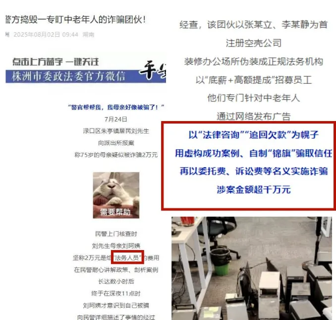以“法律咨询”“追回欠款”为幌子,渌口警方捣毁一专盯中老年人的诈骗团伙!