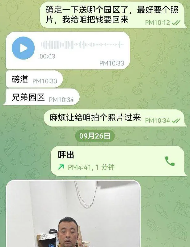 事情经过是这样 晨安介绍了一个渠道说是做招人的 这个贵气逼人 贵气逼人当时又介绍这个锋芒负责接人这一块 后面介绍过去的一男一女被锋芒安排的车接走了 这两人知道被卖 不服从 经历了非人的折磨 经过好几手转卖 后面被卖入了兄弟园区 据可靠信息 两人一共被卖了25500美金 有付款记录 在金边被车牌号2BD-0293这车接走的 后面一直说这两个人不会打字 叫我安排回国 我说可以