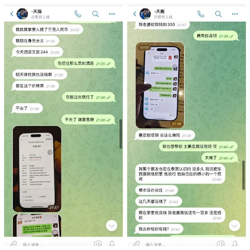 张天龙 冯斌 两个江苏畜生,借钱不还,一开始说的好好的还钱,现在直接删除拉黑。看你们可怜 饭吃不上 没地方住,借钱给你们,帮你们俩安排工作,自己偷摸跑路,离职不告诉我还想来骗我借钱给你们吃饭。没想到我能查到你们的信息吧。那点钱给你们买棺材吧,我们慢慢玩,你们的所有信息我都掌握,这次先曝光你们的护照信息,下一次就是走国内举报曝光了,你们所有的流程信息我都有。没关系,我慢慢陪你们玩,哪一天你们所有的家人 亲戚都是会知道你们在东南亚搞诈骗,当地叔叔慢慢会传唤你们的。我搞不死你们我都忍不了这口气。家里都活不起了,还敢跑出来当畜生,你们看看能不能搞死你俩就行了。