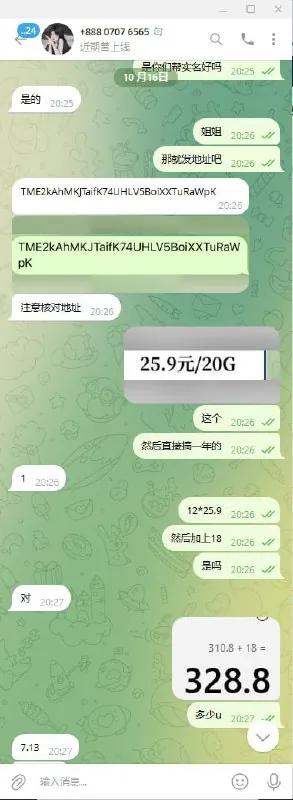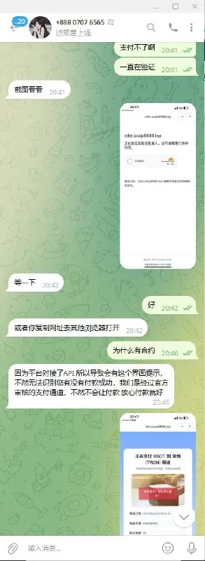 在土豆工群找了一个卖流量卡的 随随便便挑选了一个工群就进去看看了 这付款也过去了 然后发了一个链接过来 说是填写什么收货地址的 然后填写了剩下的事情就发生了 点进去付款支付合约就弹出来了 然后u就不翼而飞了 现在的人啊 是真的活不起了吧 这几百u也要靠着骗了 看着这些人啊这一辈子都是吃不上四个菜的 兄弟们注意了提醒一下 土豆也是一个垃圾东西的 这里面的骗子数不胜数了 看着就感觉让人感觉到太恶心了 里面上压多少都是借口的 感觉一点都不是真实的事情