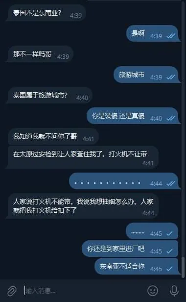 两天后,他又来求我,这次我问他是否真心想来东南亚,他说有。然后又是一堆好话,我又一次心软,安排了机票和接机服务。结果,在临上飞机前,他突然说护照被偷了。又一次,机票和服务费打水漂。虽然损失不大,但他的每一句话和行为,完全失去了可信度。只想薅羊毛。