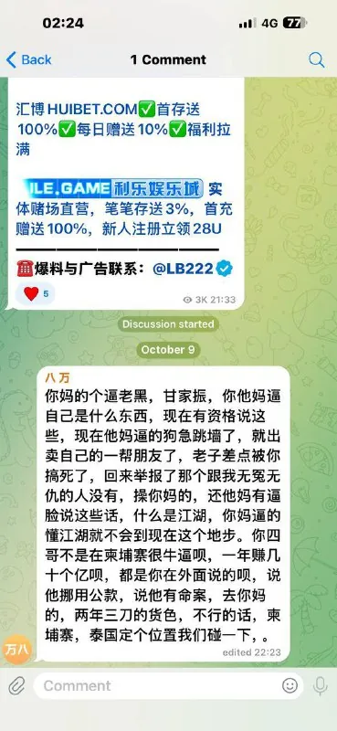 江湖是克己宽人,不是谁比阴险狡诈!黑心烂肝能活几天??这个人早上打电话给我,让我删帖子!为什么不去找编辑?你差我的钱摸着良心讲你还了?你不打招呼离职都没办走了,公司任何人有找过你?你可给了一块钱伙食费了?跑出去玩几天又回来一个院子对面一栋去上班! 你这不是杀人诛心?我是你的仇人?你在西港高收入的时候我没花你一分,输了钱又干嘛会打电话给我帮你凑8000U?就说有没有半句假话?你走了就走了,这边起码大哥招呼吧,不谈规矩这些,该讲礼貌总该讲吧?你呢?你没有,你还骂我!