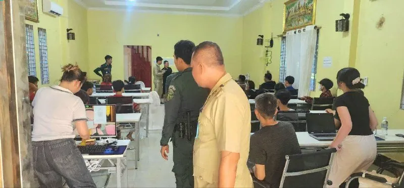 #突发事件 柬埔寨磅清扬省捣毁一网络诈骗窝点,逮捕 24 人