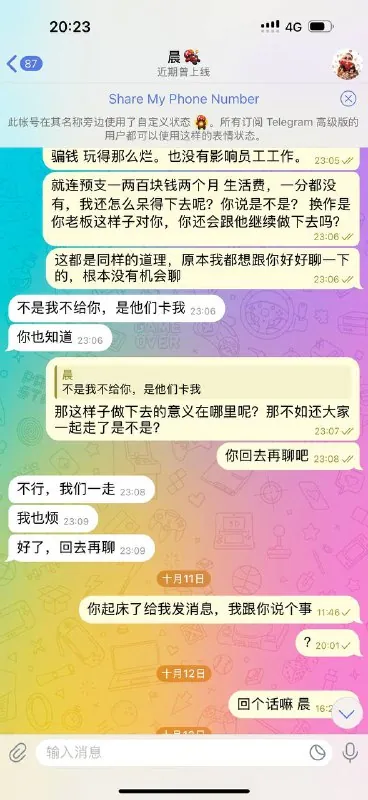 结果两个月的时间费用变成16万U多了 我当时就跟他们说谈赔付。然后就让我在三期园区算费用 结果人过来了 带了几个内保 把我的私人手机收掉。