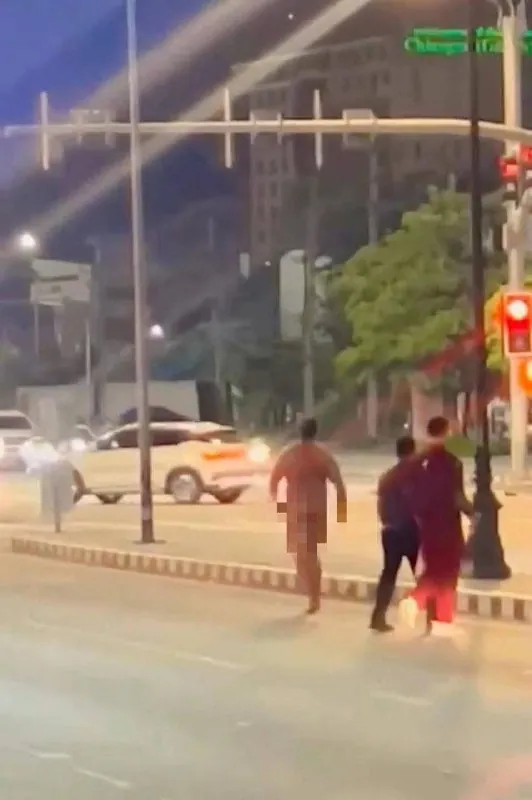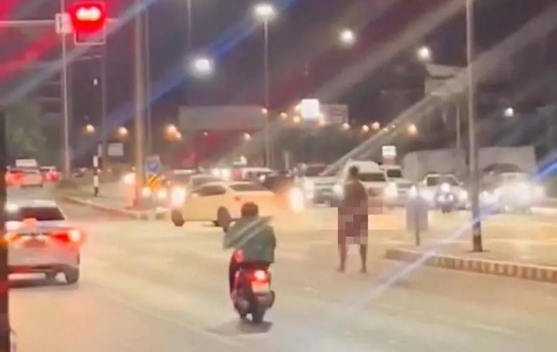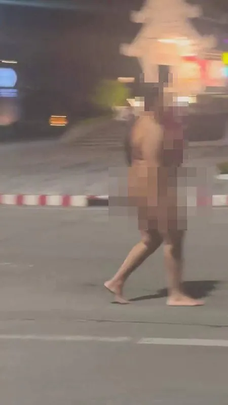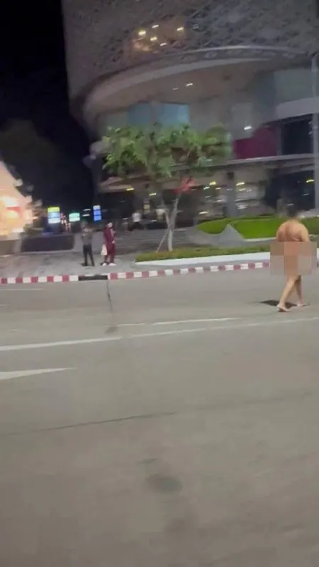 #泰国简讯 :10月12日深夜泰国清迈玛雅购物中心前十字路口,一名32岁外国男子全身赤裸行走,被警方逮捕。