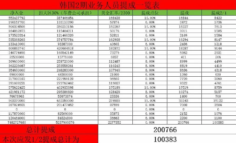 那个销冠9.7亿韩元业绩的销冠拿三万U提成拿一半就是1.5WU提成,啧啧啧 老子混迹东南亚几年都没见过这个提成点位,鸡吧大区要30%,鸡吧的通道要50%上下,纯纯把下面业务员当牛马整。