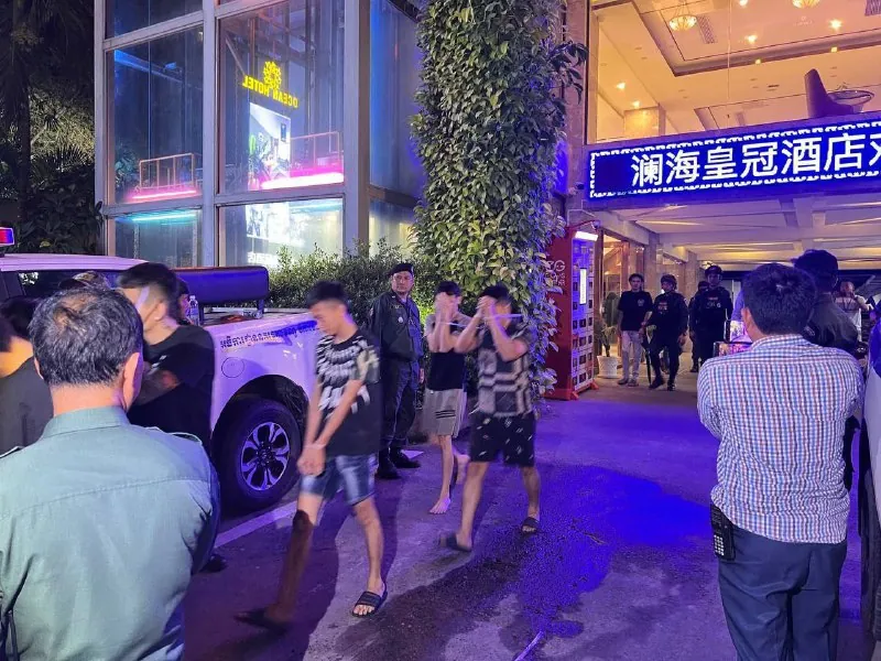 后续报道:据初步了解,金边/澜海皇冠酒店被抓的这批人是因为电信网络诈骗而被抓捕,目前已经登上大巴车拉走了,后续案件详情等警方通报。