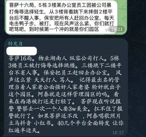 #群友爆料 :柬埔寨菩萨16局物业是湖南人 纵容公司打人!5栋3楼员工被打侮辱选择跳楼。导致不醒人事!