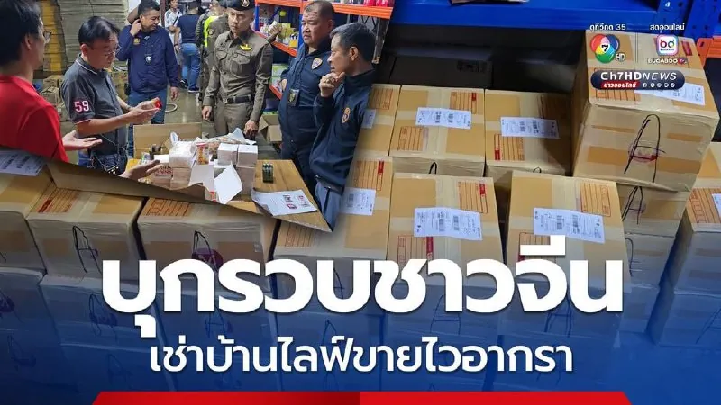 泰国警方联合多部门突击检查曼谷叻差达区Inthamara 49巷一处民宅,逮捕多名中国籍人士,查获大量未经泰国食品药品监督局(FDA)注册的保健品与“伟哥”类药物。