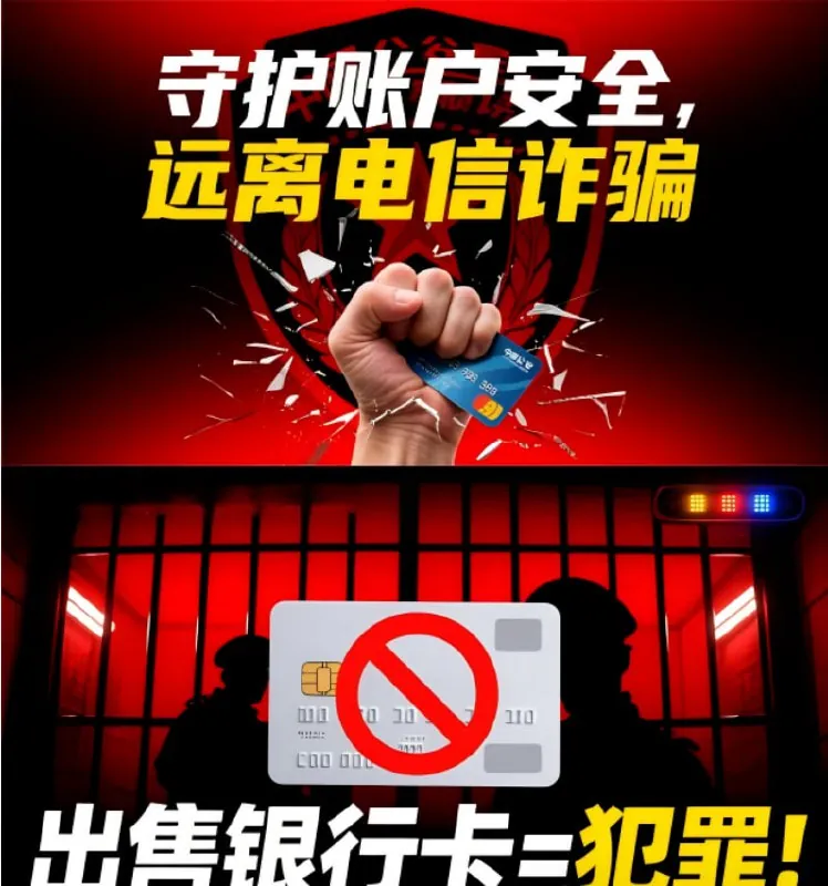 ✅ 绝不卖卡、借卡! 银行卡涉案将导致个人征信受损,甚至面临法律制裁。