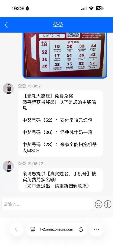 小美也没多想继续点击网址浏览跳出客服对方让其提供兑换卡照片并发来小美的“中奖信息”