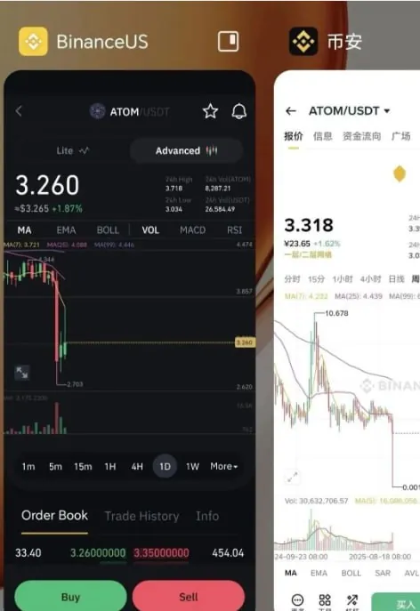 敏锐的投资者很快发现了异常——币安美国站与全球站的K线价格出现不一致,多个币种与其他交易所的价格曲线产生巨大偏离。
