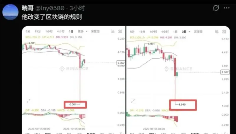 最致命的一击来自K线数据的篡改。在ATOM价格异常事件中,币安悄悄将标记价格从0.001美元“修复”至1.54美元,却在三日线中露出马脚。