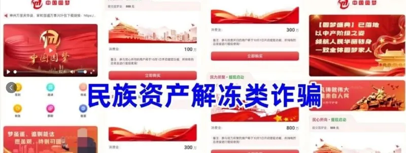 4.“中国圆梦” APP:冒用国家部门旗号,以“缴纳圆梦金换百万消费金” 为诱饵,收款账户非官方,纯为诈骗。