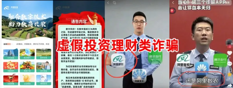 11.虚构“阿里数农” APP:冒用“阿里巴巴”公司名义,推出 “农业币”“科技农场” 等高额返利项目。即便警方预警,仍有家属痴迷其中,拒不相信骗局。