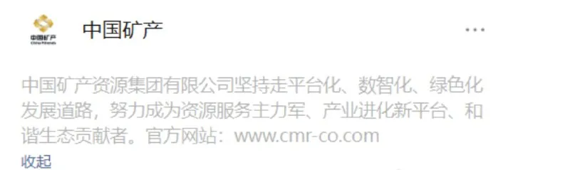 全称:中国矿产资源集团有限公司官网: http://www.cmr-co.com官方微信:中国矿产