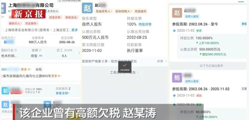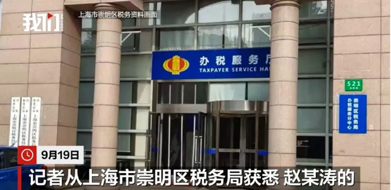 9月19日,记者从上海崇明区税务局获悉,赵某涛法人代表身份已被标注为冒用。