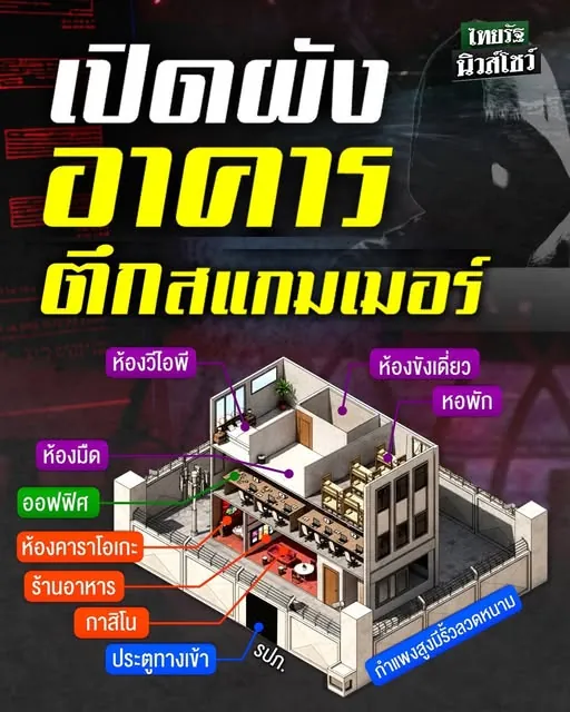 此外,在这些建筑内部,还设有 餐厅、赌场、卡拉OK厅、办公室,甚至还有 黑屋与单人禁闭室,用于 惩罚业绩不达标的人员。