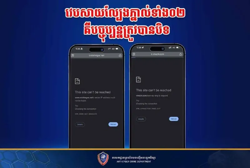 据柬媒消息,10月17日,国家警察总署反科技犯罪局针对两家涉嫌从事非法网络赌博活动的网站——vina24.com 与 minhngoc.net——展开调查。经核实,目前上述网站均已被关闭。