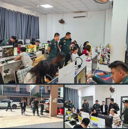 据柬媒消息,10月9日上午国家警察总署联合柴桢省政府执法部门,对巴域市一栋疑似被用于电信诈骗活动的办公楼展开突击检查。