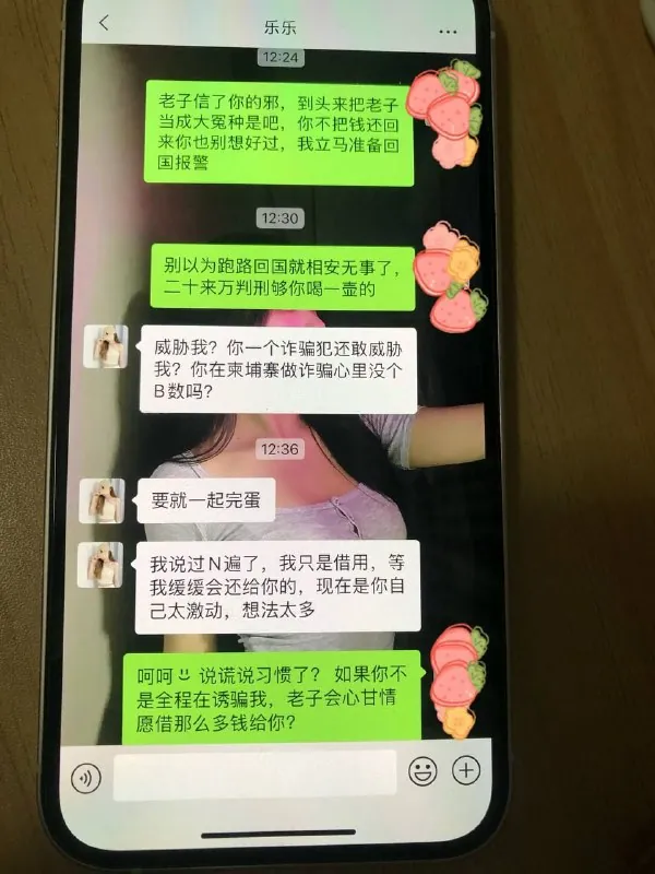 #网友反馈:国内女主播联合在柬埔寨的哥哥骗我打了两万赔付。来东南亚六年了,时不时的看她直播给生活添彩,礼物打赏也有几万块了,前前后后给了二十多万人民币,之后认识时间长了,她通过直播平台请求我们营救被困在园区的哥哥,声称他遭受虐待,需要资金赎身然而给了钱以后她哥哥没有出来,上当了,赔付是18000u,我没想到现在国内的主播为了钱毫无底线!希望你能主动联系我,否则我们可能采取进一步措施。本人愿意支付2000美元购买她的个人信息。PS:这纹身一看就不是好惹的主😂