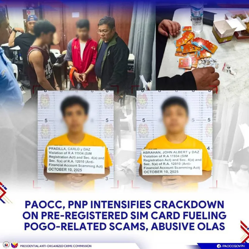 #菲媒报道🚨菲警方突袭SIM卡黑市!揭出POGO诈骗“通讯供应链”菲律宾总统反有组织犯罪委员会(PAOCC)与国家警察10月9日联合突袭 #帕拉尼亚克苏卡特 地区一座加油站,逮捕两名男子,当场查获240张非法预注册SIM卡。两名嫌犯卡洛·达兹与约翰·阿布拉罕·达兹涉嫌通过Facebook交易假名SIM卡,#为POGO诈骗与网贷勒索集团提供通讯工具。PAOCC副秘书长吉尔伯托·克鲁兹表示,这些非法SIM卡是诈骗集团的“隐身斗篷”,切断供应链将有效遏制跨国诈骗活动。两人已被依《SIM卡登记法》与《反 查看更多