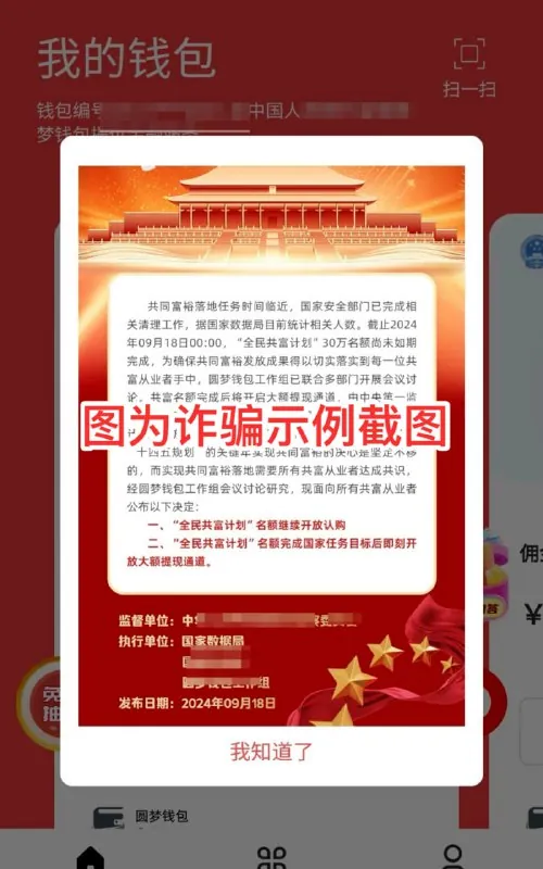 当心!“人民资产”“健康中国”“数农国际”等9个网络项目,专盯你的钱袋子!遇到请立即删除近期,以“数字资产”“国家平台”“高额返利”为诱饵的诈骗活动频繁出现,不法分子通过伪造国家机关或知名企业名义,精心包装各类虚假投资理财项目,诱骗公众下载涉诈APP并投入资金。尽管多地监管部门已公开发布风险提示,但仍有参与者因前期投入难以收回,心存侥幸,陷入“提现难”“连环套”的困境。1、套牌的“人民资产”APP民族资产解冻类诈骗。不法分子冒充“人民数据”公司的名义,伪造“文件”,制作散布涉诈APP,声称完 查看更多